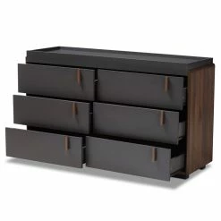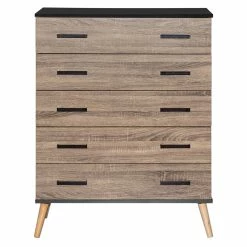 Cheapest 🎉 Better Home Products Eli Mid-Century Modern 5 Drawer Chest In Black & Sonoma Oak 🔔