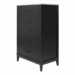 Hot Sale ๐ฅฐ Ameriwood Home Lynnhaven Tall 5 Drawer ๐ Dresser In Black W/ White Marble Top ๐