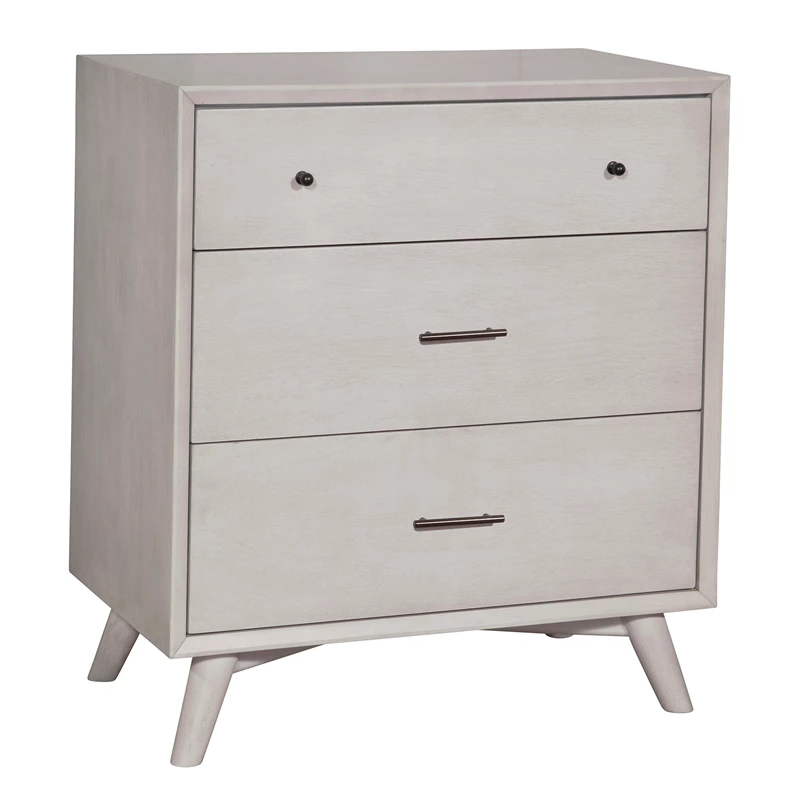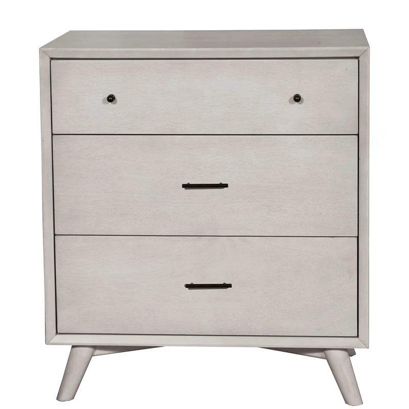 The Flynn collection features the classic lines of Mid-Century Modern furniture that never goes out of style. Its sturdy frames are built to last, constructed of sustainably sourced solid Mahogany to ensure a lifetime of use. The Flynn Accent Chest has three drawers to accommodate most extra storage needs. The dresser comes fully assembled, and is constructed with ball bearing metal drawer glides and French & English dovetail drawer construction. The Flynn bedroom makes it easy to create a cohesive decorating style or mix and match for a more personalized look. Coordinates with other pieces in multiple finish options as part of the Alpine Furniture Flynn collection sold separately.