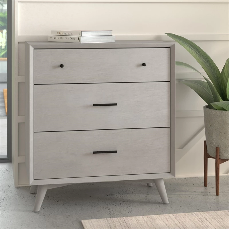 New ๐งจ Alpine Furniture Flynn Mid Century Modern Wood 3 Drawer Accent Chest In Gray ๐