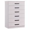 The Mainstays Emery 5 Drawer Dresser will offer up more than enough room for you to keep clothes off the floor. The crisp white finish on the laminated particleboard gives the Dresser a classic look that fits into any style.