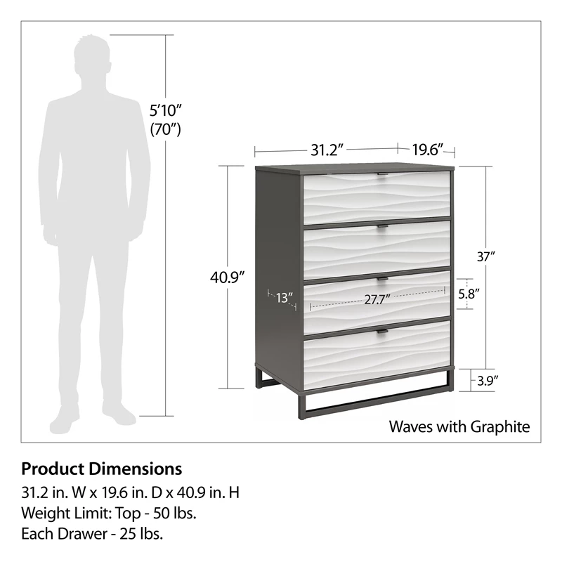 Buy ๐ฅฐ Ameriwood Home Monterey 4 Drawer ๐ Dresser In Waves With Graphite ๐ฅ