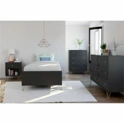 Free up closet space with the Novogratz Owen 6 Drawer Dresser. The black finish on the laminated particleboard adds a modern touch while the gold metal hairpin legs bring a mid-century retro feel for a stylish piece you will love.
