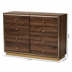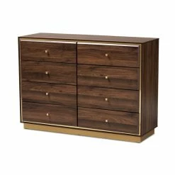 Outlet ๐งจ Baxton Studio Cormac Walnut Brown Finished Wood And Gold Metal 8-Drawer ๐ Dresser ๐