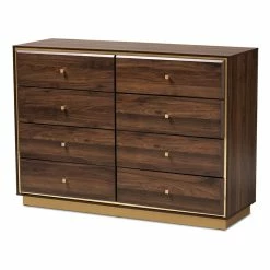Outlet ๐งจ Baxton Studio Cormac Walnut Brown Finished Wood And Gold Metal 8-Drawer ๐ Dresser ๐
