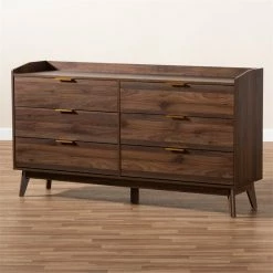 Cheapest ✨ Baxton Studio Lena Mid-Century 6-Drawer Wood 👗 Dresser In Walnut And Brown 😍