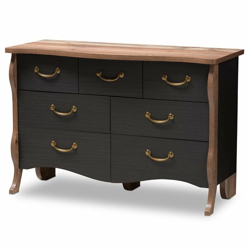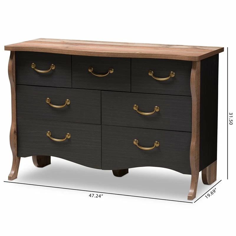 Best deal 😀 Baxton Studio Romilly 7 Drawer 👗 Dresser In Black And Oak ⌛