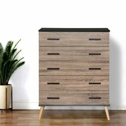 Cheapest 🎉 Better Home Products Eli Mid-Century Modern 5 Drawer Chest In Black & Sonoma Oak 🔔