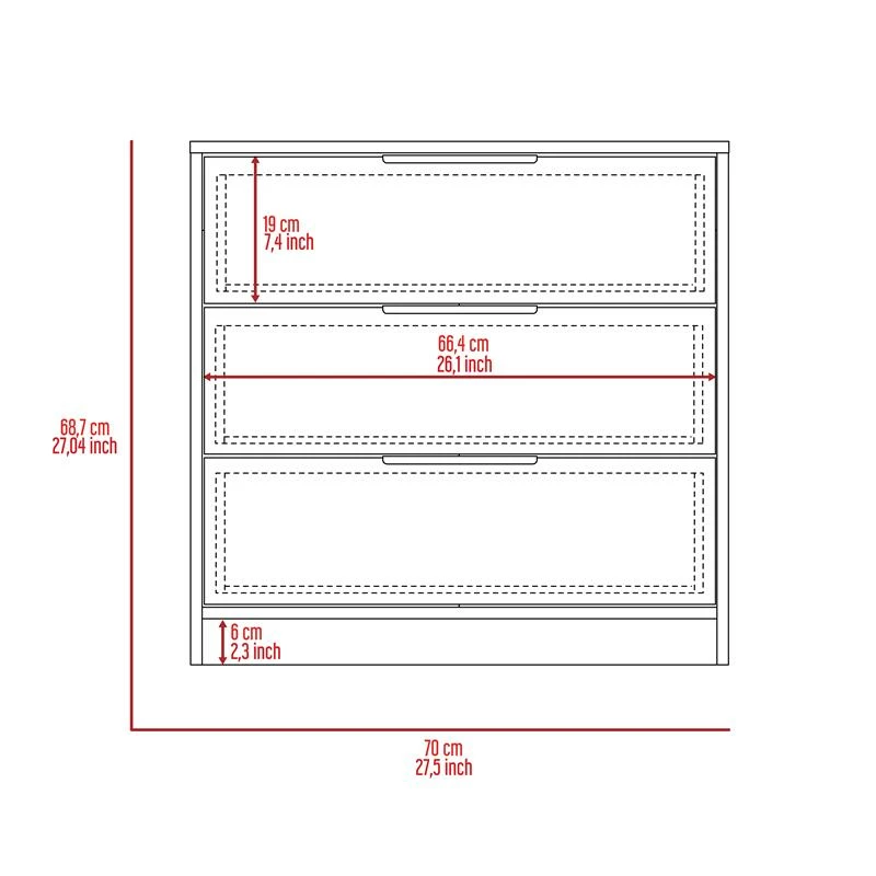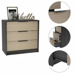 Bring style and design to your room with the Bowery Hill 3 Drawer Kaia dresser. 3 large drawers perfect provide incredible storage space without sacrificing style. The beautiful espresso frame combined with light oak drawers will give your space a modern industrial look, perfect for a bedroom or office. Dimensions: