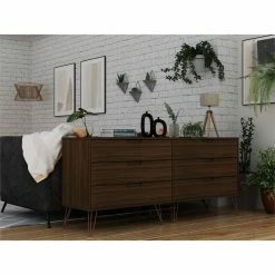 Cheap ๐ Eden Home Mid-Century Modern Wood Double Low 6-Drawer ๐ Dresser In Brown ๐