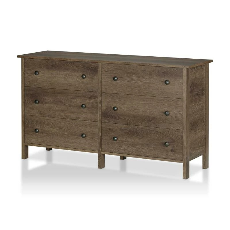 Brand new โญ Furniture Of America Reyes Wood 6-Drawer Horizontal ๐ Dresser In Distressed Walnut ๐