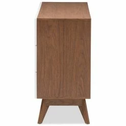 Exude mid-century Scandinavian style in your home with this two-tone 6-drawer storage dresser. Showcasing a sleek and simple design with functionality in mind, it is constructed of engineered wood in walnut and white finishing for lasting good look. Featuring drawers with cut-out handles, contrasting with the walnut wood panels inlaid, it exudes laid-back luxury and casts a Scandinavian aesthetic over your space. Angular legs complete mid-century look. Six pull-out drawers open to reveal ample storage for clothes and bedroom accessories for practicality. Made in Malaysia, this 6-drawer storage dresser requires assembly.