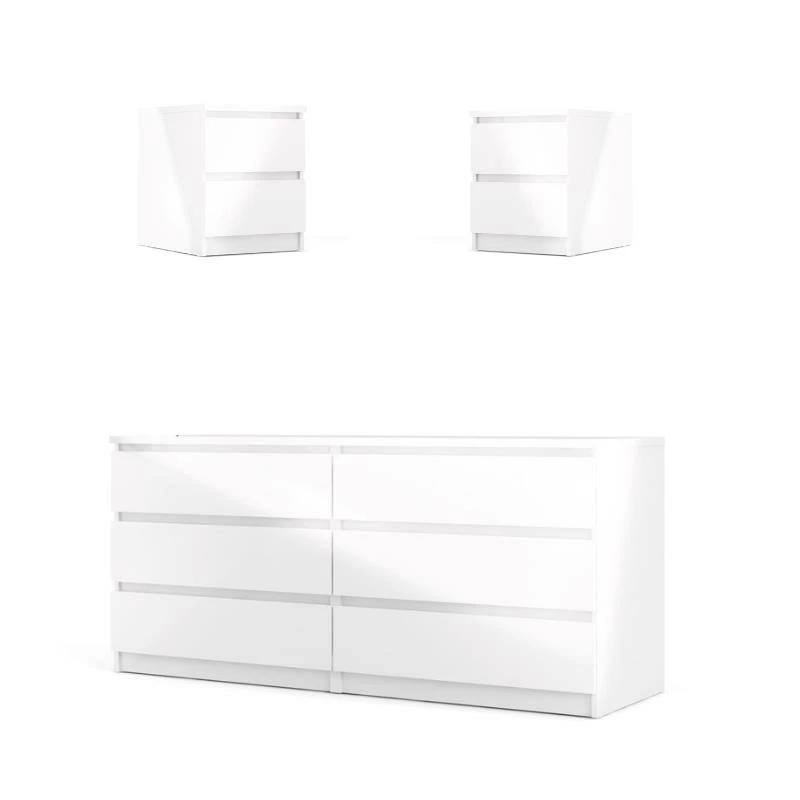 Lowest price online On all 3PC Set Engineered Wood with 2 Nightstands and 1 Double Dresser in White Gloss – 2018640-PKG