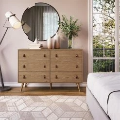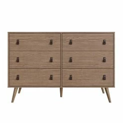 Promo ๐ Manhattan Comfort Amber Double ๐ Dresser With Faux Leather Handles In Nature ๐ฅฐ