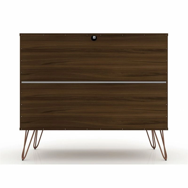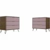 Hot Sale 🤩 Manhattan Comfort Rockefeller Wood 2 Pc. Mid Century Modern 3 Drawer 👗 Dresser Set Brown 🔥