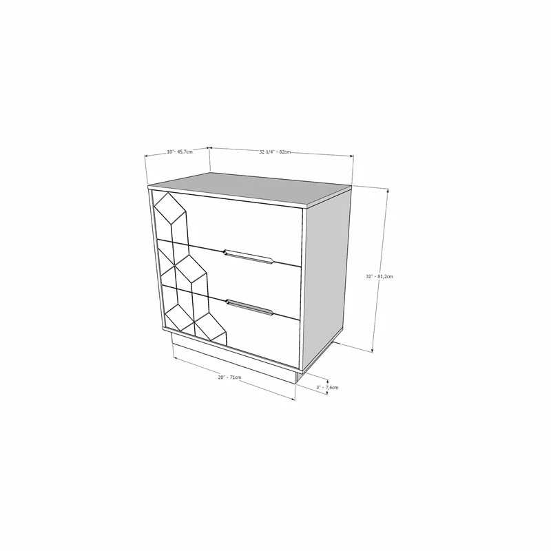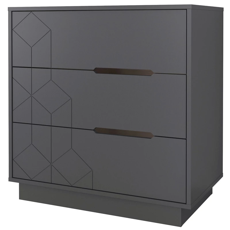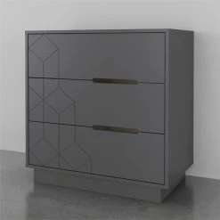 With its geometric textured front, our 3-drawer dresser will add texture and design to your bedroom. The sleek design of this 3-drawer chest is complemented with its cut-out handles that add a touch of modernity to this piece of furniture.