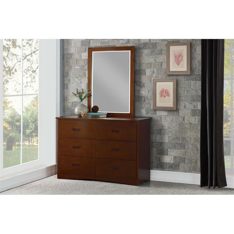 The transitional design of the Pemberly Row Collection’s dresser is featured in a dark cherry finish making it an appropriate choice for a number of youth bedroom settings.