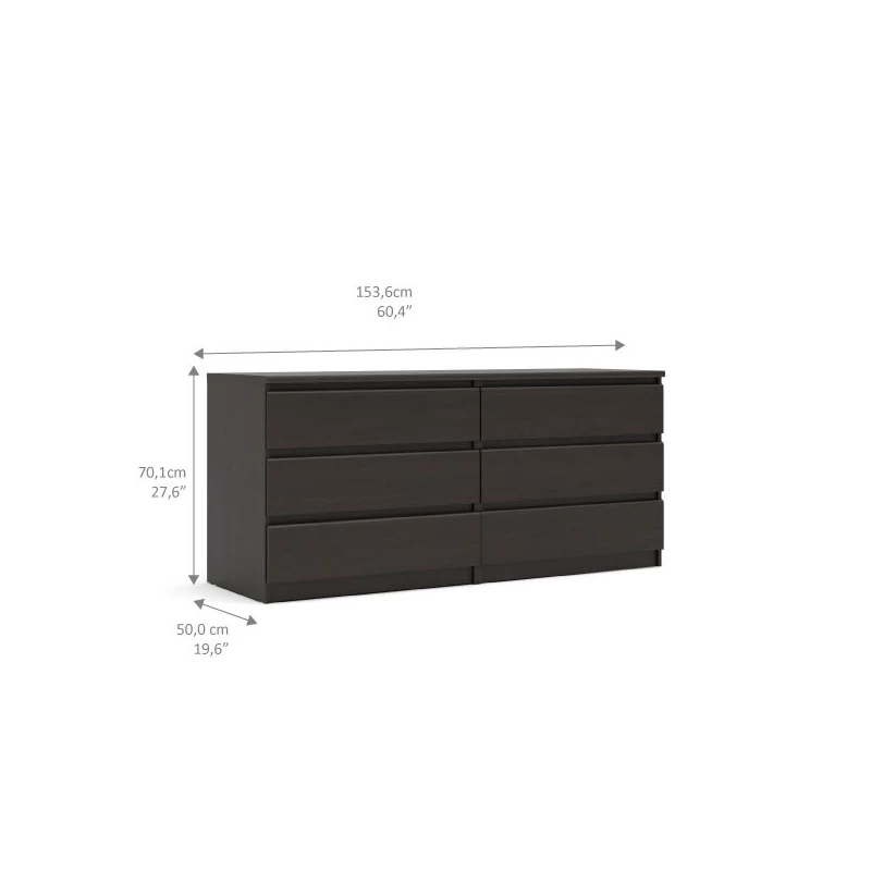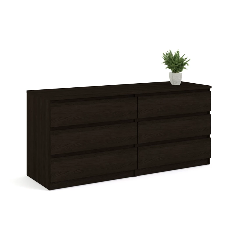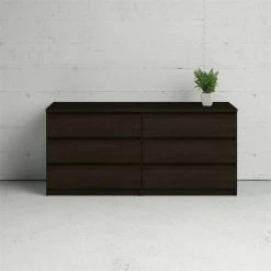 With ample storage, this 6 Drawer Double Dresser is an easy way to keep your belongings organized. From delicates to bulky items the 6 Drawer Double Dresser can store various items while offering a modern, sleek look that merges seamlessly with any décor. With metal drawer glides and clean drawer interiors for smooth movement the chest is a simply designed piece. The finish is easy to clean, water, scratch, and stain resistant making it an ideal choice for families or college living. This Pemberly Row Contemporary Wood 6 Drawer Double Dresser in Espresso will be a undoubtedly a great addition to your home décor. Add a touch of elegance to your home setting. The modern design showcases for a timeless aesthetic that goes with a wide range of decor themes. It has a simplicity and a flare all at once, as if inspired by the simple gown that is confident in taking up its space.