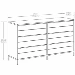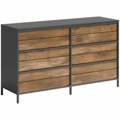 Immense care should be taken into deciding bedroom furniture. What you see when you first open your eyes in the morning should be sleek, beautiful, and simple. Begin every day with the modern minimalist look of the 6 drawer dresser from the Pemberly Row collection. This wood dresser features 6 large drawers perfect for storing all your wardrobe essentials—blouses, denim, sweatpants, and more. Sleek, barely-there handles enhance the minimalist design while remaining functional. The large top surface of this dresser with drawers allows you to display an accent lamp, your cologne or perfume, or your favorite plant. A durable, powder coated metal frame in Black, hard lines, and Vintage Oak accents make this bedroom dresser a mid-century modern furniture connoisseurs dream.