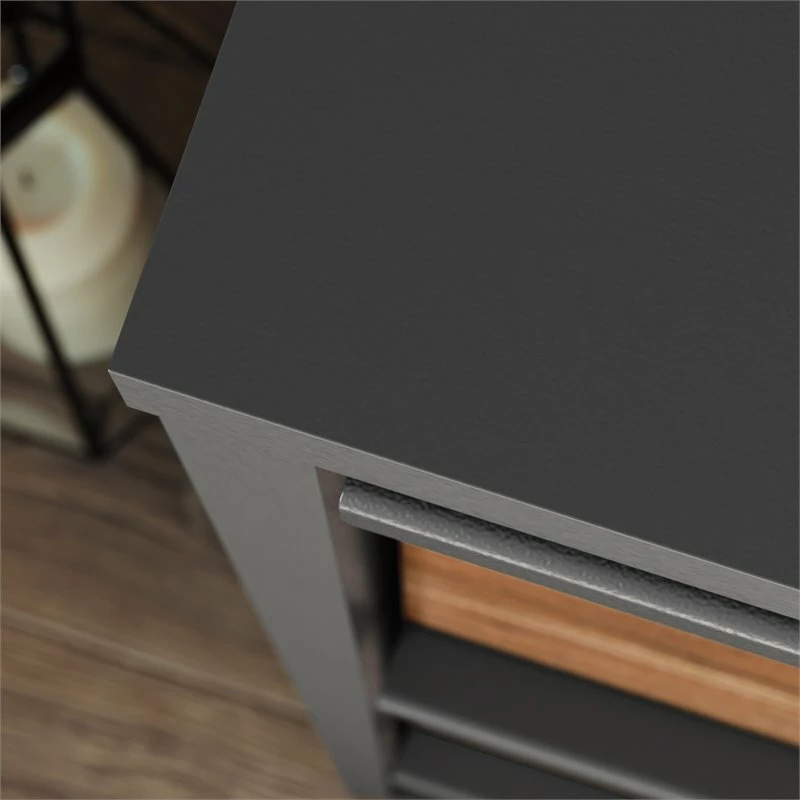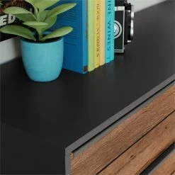 Immense care should be taken into deciding bedroom furniture. What you see when you first open your eyes in the morning should be sleek, beautiful, and simple. Begin every day with the modern minimalist look of the 6 drawer dresser from the Boulevard Café collection. This wood dresser features 6 large drawers perfect for storing all your wardrobe essentials—blouses, denim, sweatpants, and more. Sleek, barely-there handles enhance the minimalist design while remaining functional. The large top surface of this dresser with drawers allows you to display an accent lamp, your cologne or perfume, or your favorite plant. A durable, powder coated metal frame in Black, hard lines, and Vintage Oak® accents make this bedroom dresser a mid-century modern furniture connoisseurs dream. This clothes dresser from the stylish Boulevard Café collection is the ideal addition to a master bedroom or a guest bedroom.