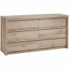 Are you seeking a bedroom dresser with a rustic vibe that is as stylish as the clothes inside of it? This 6-drawer dresser from the Pacific View® collection has the great looks you want with the expansive storage that we know you need. This bedroom dresser features six large drawers that open and close on smooth metal runners for easy-access storage of items like denim jeans, blouses, and cozy sweaters. This dresser with drawers also features a spacious top surface that provides space to store home essentials like decorative plants, cologne bottles, a makeup bag, and framed photos of your family. Need storage in a guest room? This double dresser has a universal aesthetic to fit seamlessly into the second bedroom, hallway, or foyer for added storage where you need it most. Finished in Prime Oak®, this wood dresser will have your bedroom feeling organized in no time!