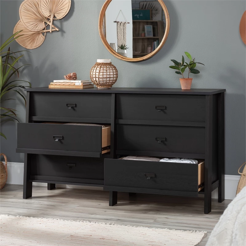 Outlet ⭐ Sauder Trestle Engineered Wood 6 Drawer 👗 Dresser In Raven Oak 🛒