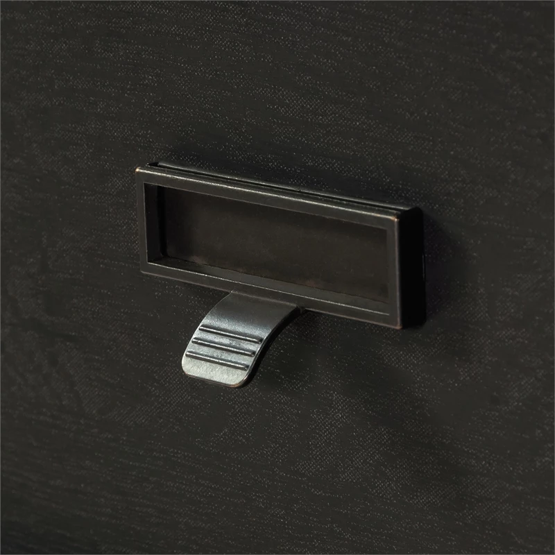 An architectural beauty with style and function at the forefront. This dramatic 6-drawer dresser from the Trestle® collection delivers a unique look, with angled legs and classic hardware accents. This bedroom dresser has six spacious drawers that open and close on smooth metal runners for easy access storage of a variety of different items: from stacks of slacks and T- shirts to your collection of leggings and cozy sweatshirts. Each drawer is detailed with attractive period hardware that gives it an extra touch of style. And to save you time, the drawers utilize a T-lock assembly process. The spacious top surface of this double dresser provides you with additional space to store other bedroom essentials or display home décor items like an accent lamp, bottles of perfume, your makeup bag and photos of your family and friends too! Finished in a dark Raven Oak®, this dresser with drawers provides a bedroom furniture option for clothes storage and more.
