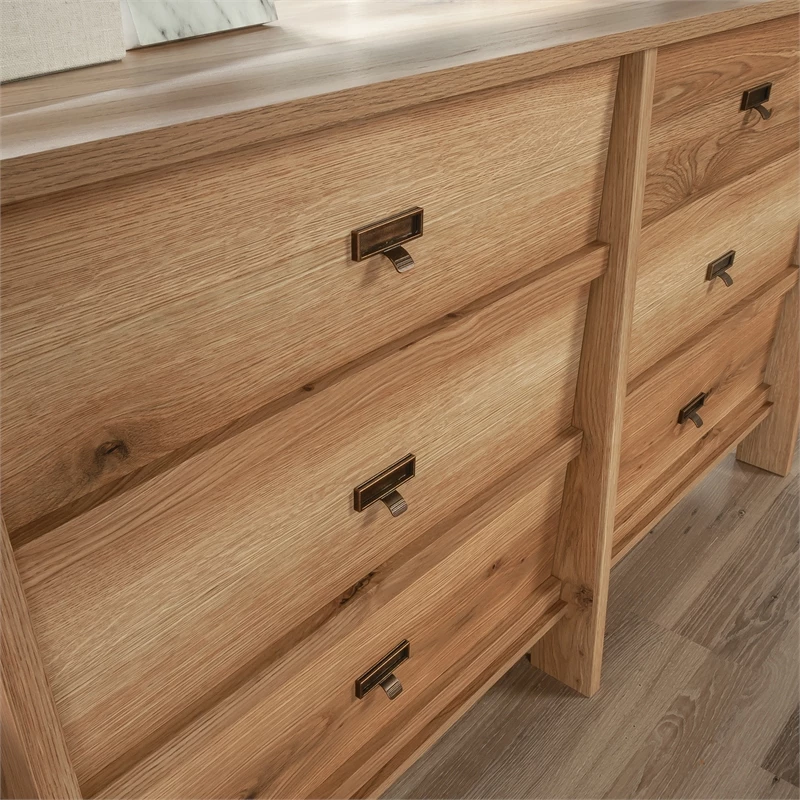 Outlet 🎉 Sauder Trestle Engineered Wood 6 Drawer 👗 Dresser In Timber Oak ⭐