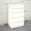 The Breakwater Chest is constructed from laminated particle board with a pure white finish. This chest features five large drawers for ample storage while adding beauty and a streamlined look to your living space. It has Smart Glide drawer slides for a smooth gliding motion and metal knobs for easy access to your belongings. The simple, yet practical Breakwater Chest offers a lasting appeal you will enjoy for many years.