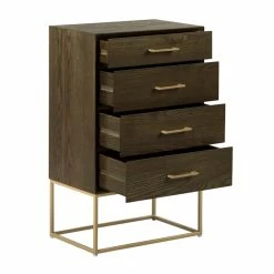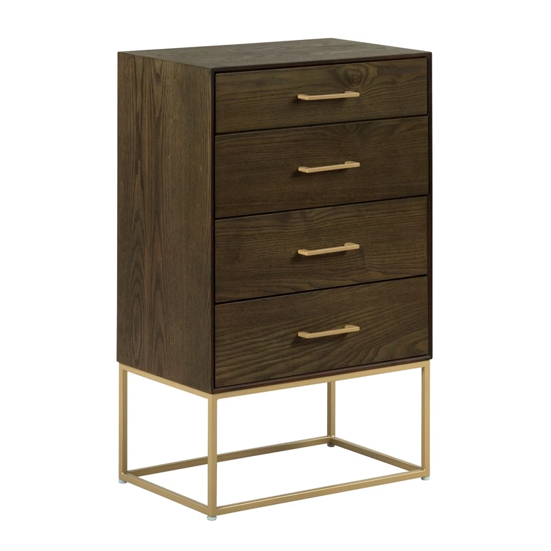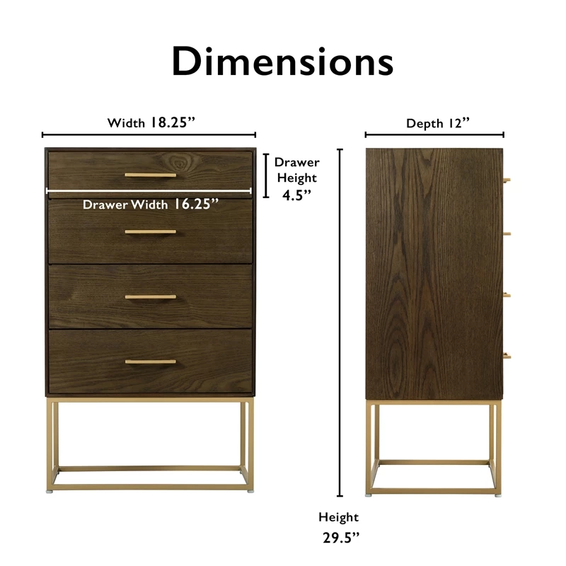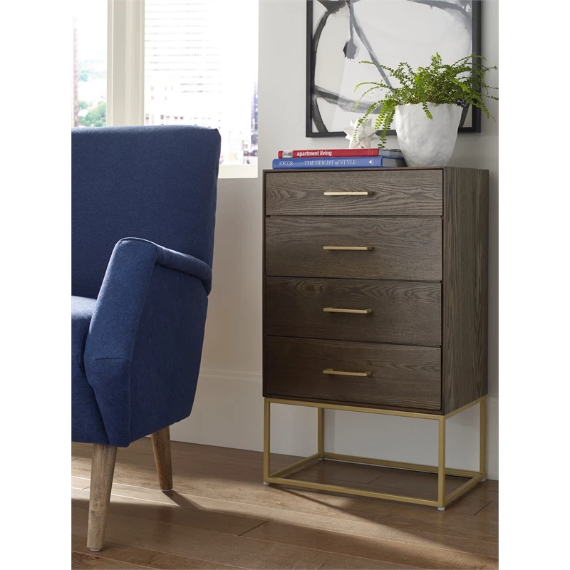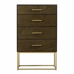 Inspired by the urban lifestyle, the Franklin 4 Drawer Dresser combines the refined feel of walnut with the modern, sleek look of gold metal. Its four spacious drawers are accented with gold hardware for a functional, sophisticated look. With clean lines and simple design, the Franklin Dresser from Tommy Hilfiger complements any decor.