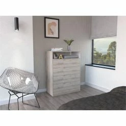 The Trent Home Four Drawer Dresser is the perfect solution if you want to add extra storage to your room without scarifying your unique style. This piece can be used in the room you prefer for its incredible dimensions (33”W X 16,7”D X 43,1”H); This dresser is perfect for anyone looking to keep their clothes and belongings organized stylishly. With four drawers (31” W X 7,5”H), you can fit everything you need with ease. Its countertop is perfect for showing your favorite decorations (33”W X 16,7”D) Made with an exclusive light grey particleboard finish.