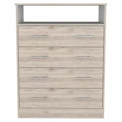 The Trent Home Four Drawer Dresser is the perfect solution if you want to add extra storage to your room without scarifying your unique style. This piece can be used in the room you prefer for its incredible dimensions (33”W X 16,7”D X 43,1”H); This dresser is perfect for anyone looking to keep their clothes and belongings organized stylishly. With four drawers (31” W X 7,5”H), you can fit everything you need with ease. Its countertop is perfect for showing your favorite decorations (33”W X 16,7”D) Made with an exclusive light grey particleboard finish.
