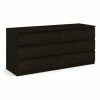 Keep it clean. Austin double dresser can organize your clothing without overbearing your room. With 8 wide drawers, sweaters and lines find a happy home here. Unique dresser depth makes the Austin ideal for smaller spaces or high traffic areas in bedrooms. Streamlined hardware and round feet give the Austin line its simple chic feel. Standing strong with metal drawer liners and an easy to clean foil surface the Austin dresser will be a productive and durable piece in your collection.