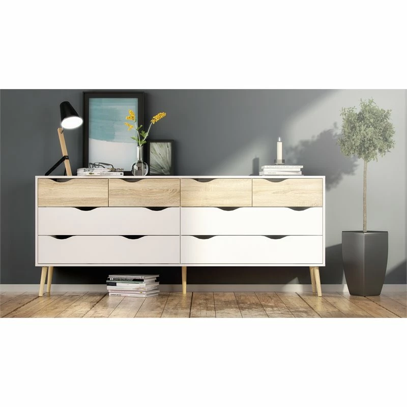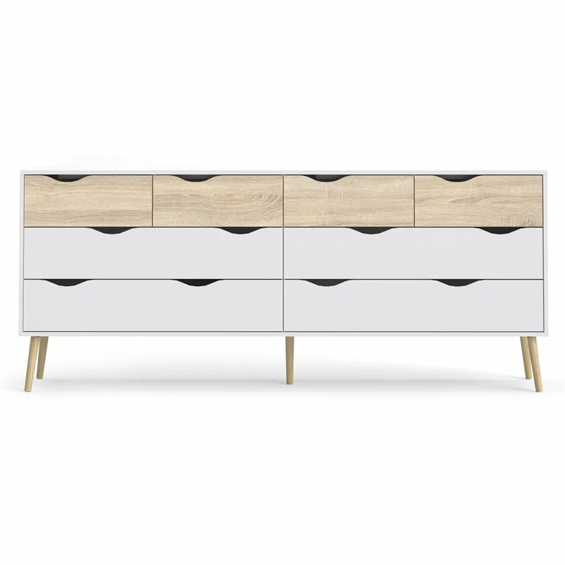 Outlet ❤️ Tvilum Diana Modern Wood 8-Drawer Double 👗 Dresser In White And Oak ✨