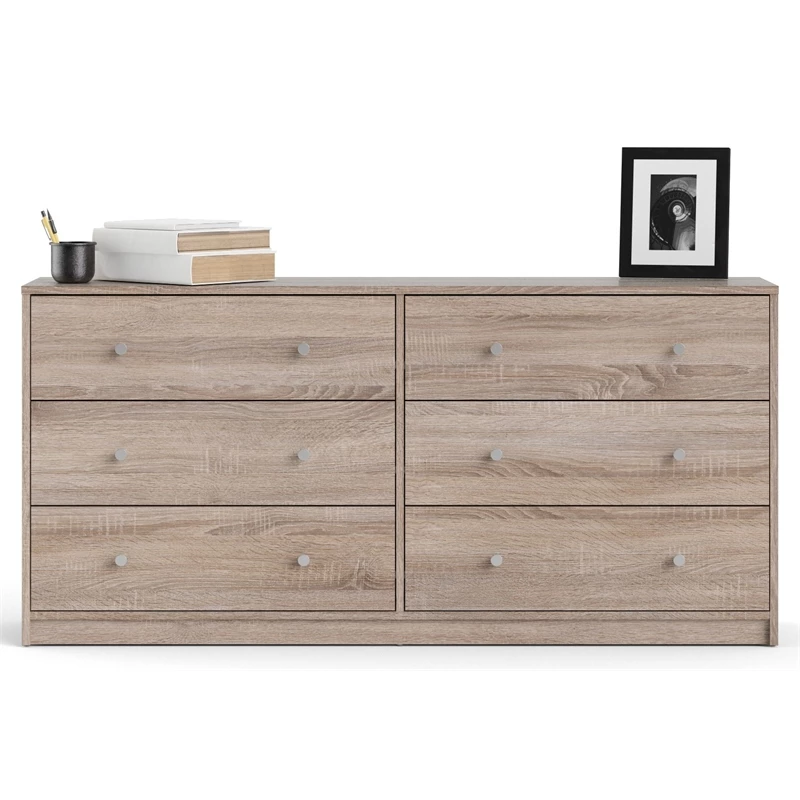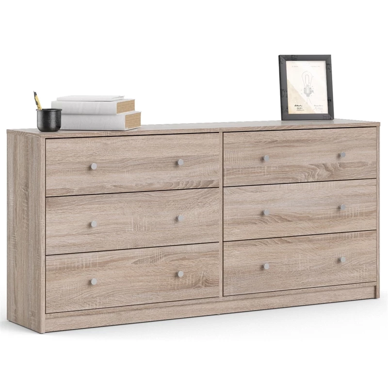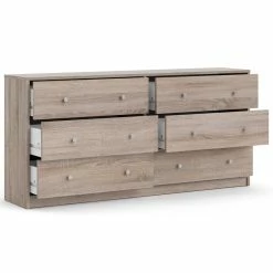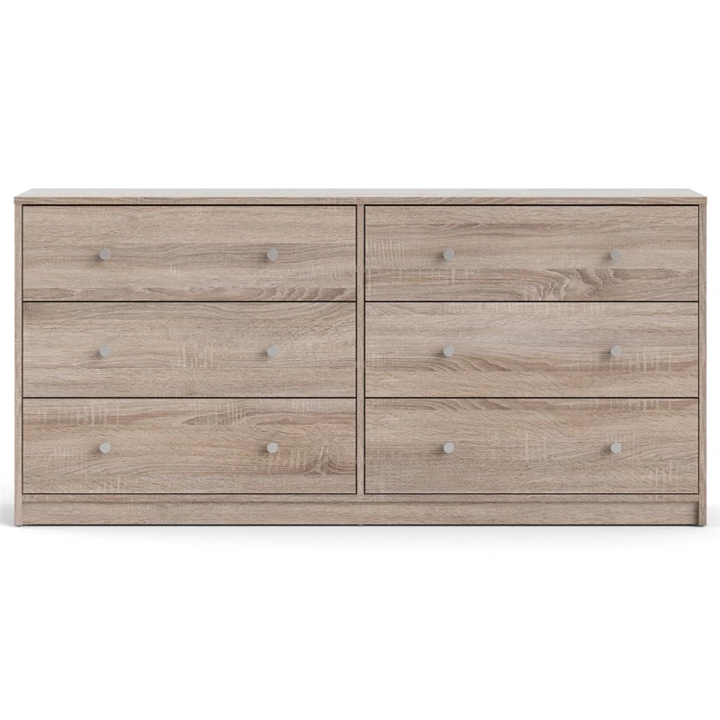 Organize your wardrobe with the Portland 6 Drawer Double Dresser. The simple, sophisticated design features six drawers with high sides, clean lines and a smooth finish. Equally suited for the kid’s room or master bedroom, the double dresser is a versatile piece of furniture, offering roomy storage for all your organizational needs. The Portland 6 Drawer Double Dresser is traditional Danish design and produced with a fade resistant foil surface, which is easy to clean. Combine this chest with coordinating Portland items to complete the look.