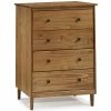 Add storage space into your home for your clothing and extra throws or pillows with this 3 drawer dresser. In a stylish, mid century modern design featuring angled legs and cutout handles of solid pine wood in a stained finish. The intriguing design integrates a transitional aesthetic to complement your home décor. With three storage deep drawers to keep your clothing organized in your bedroom or for blankets and extra bedding in your guest room.