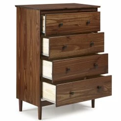 Best Sale 😉 Walker Edison 4 Drawer Solid Wood 👗 Dresser In Walnut 🛒