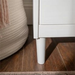 This roomy 6-drawer wood dresser gives you just the space you need to fit your clothing pieces in, while also having a classic and simple style. With its minimalist style, it easily pairs with a variety of other styles including transitional and modern, so that you can incorporate it into your room. Fashioned of solid pine and high-grade MDF responsibly harvested from renewable forests for a sustainable, sturdy design, with simple circular drawer handles giving a subtle accent to the piece. This midcentury modern dresser features four upper drawers, ideal for smaller clothing items like socks, and four lower drawers for anything from your tees to your jeans. The tapered legs add to the classic style, while also making it easier to clean the floor space underneath. This dresser will be a practical and stylish addition to your bedroom.