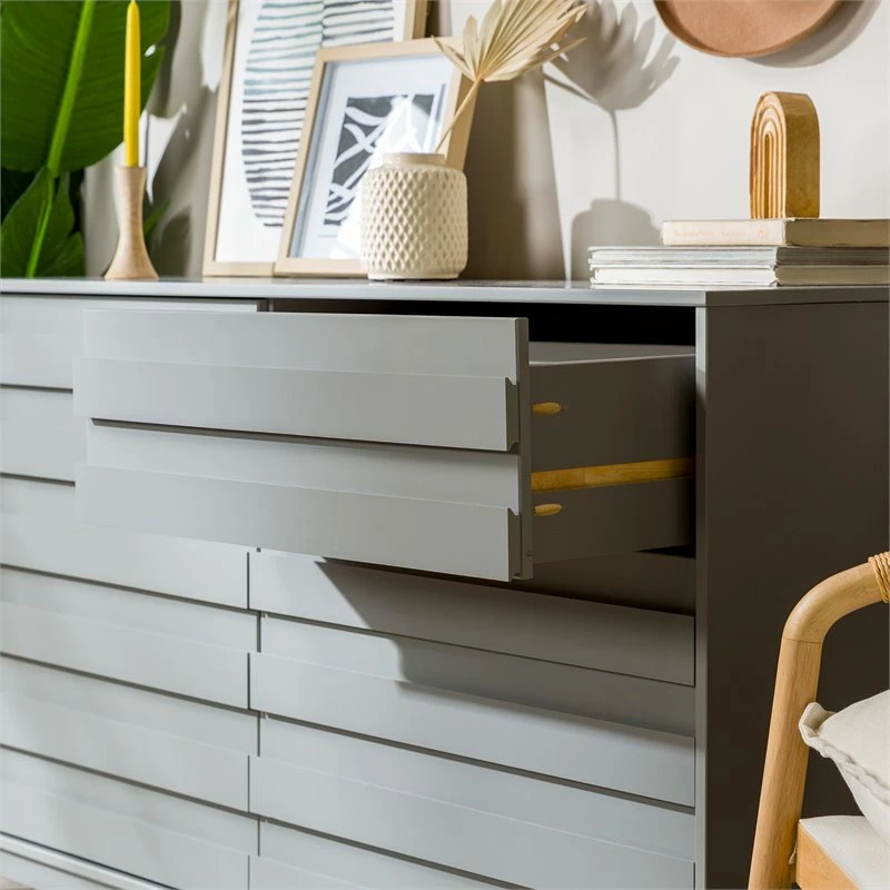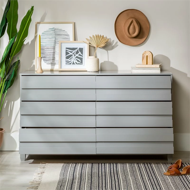 Cheap 😍 Walker Edison Modern Grooved Panel 6-Drawer Wood Bedroom 👗 Dresser In Gray ✨